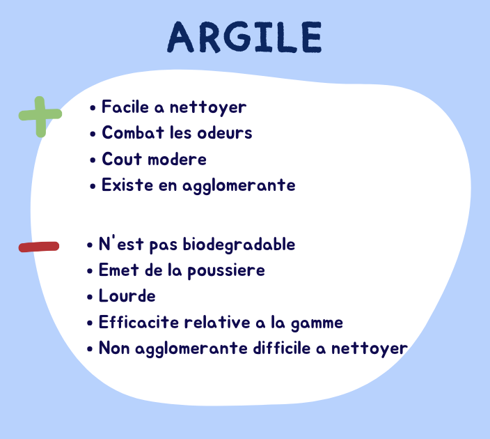 Voici maintenant les points positifs et négatifs des matières de litière.