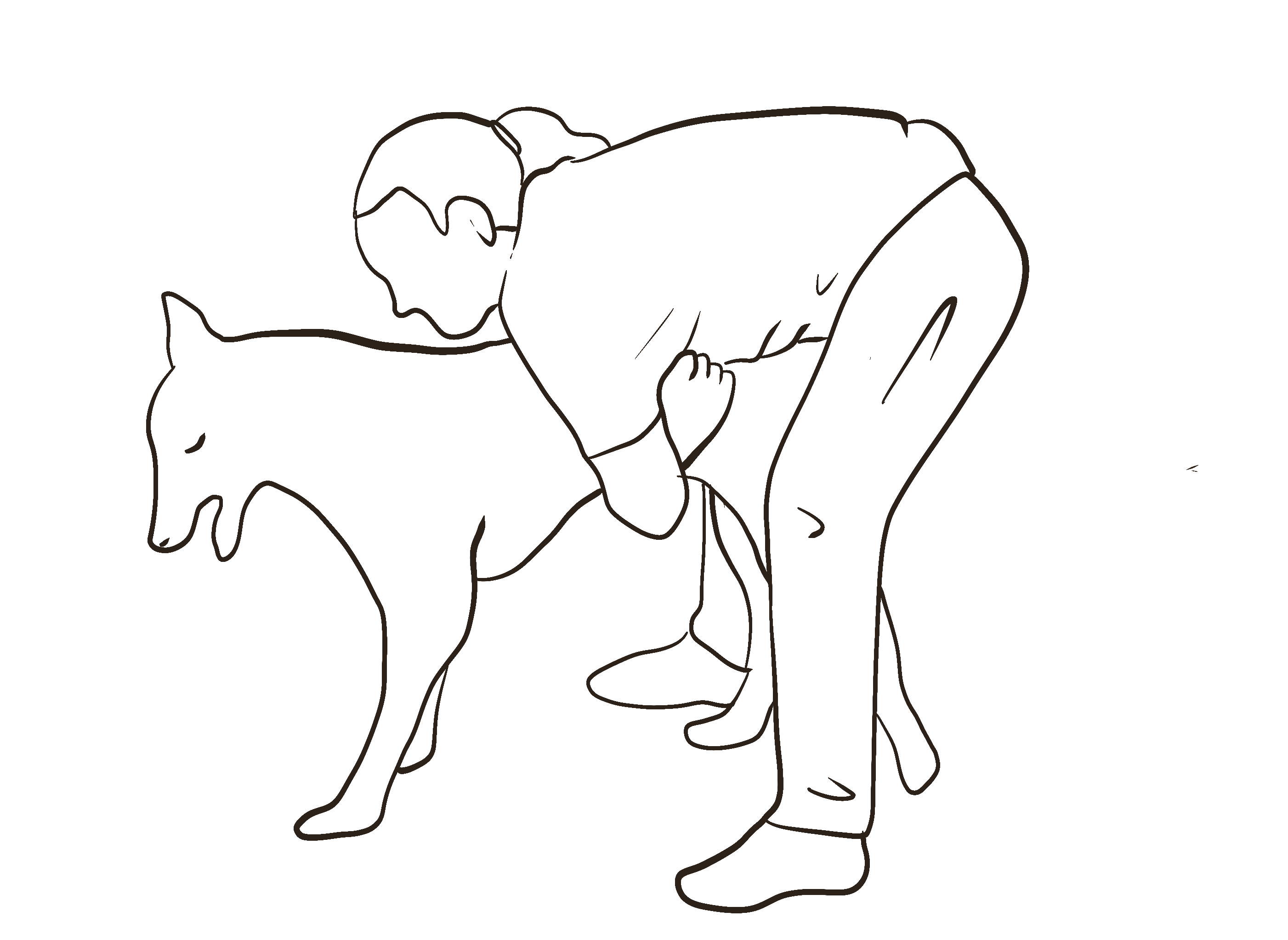 Si possible, mettez l'animal la tête vers le bas en plaçant son dos contre votre poitrine, s'il est trop grand placez-vous derrière celui-ci et entourez son abdomen de vos bras.